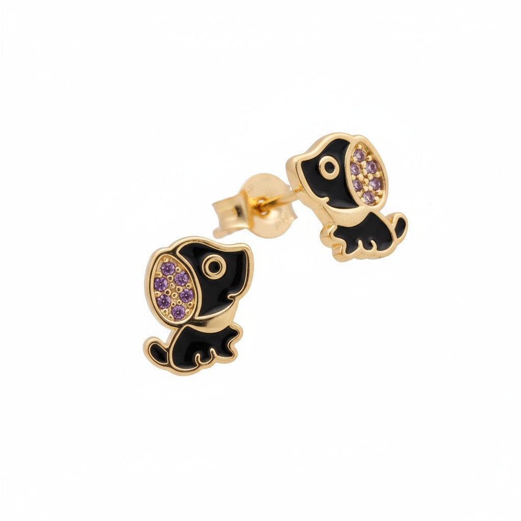 Los broqueles Merlina de la línea PetLover by Maandu celebran la historia de una perrita valiente que encontró su hogar y llenó de amor a quienes la adoptaron. Su diseño con detalles en esmalte negro y cristales simboliza la lealtad, ternura y luz que todo perrito deja a su paso.